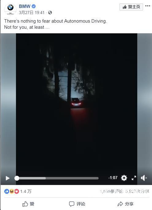 該廣告來源于國外視頻網站Youtube的寶馬總部賬號。3月27日,寶馬總部的臉書、推特等社交賬號也同時發布了該視頻,并稱公司正在努力使全自動駕駛汽車更加安全。當天,寶馬公司開放了數據驅動開發中心,幫助開發和驗證高度全自動駕駛功能,并將該中心稱為D3。