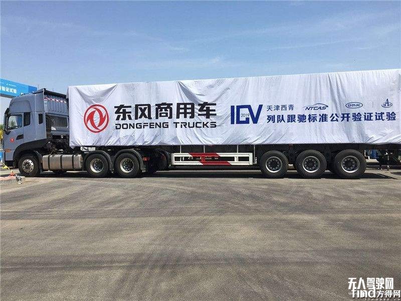 以東風商用車、中國重汽、北京福田為代表的三家整車企業各派出旗下三臺重卡參加國內首次商用車列隊跟馳標準驗證,公開驗證試驗在天津舉行。三輛無人駕駛的東風天龍重卡,在測試道路上平穩自如地行駛。三輛車通過V2V實現網聯協同編隊、保持極近車距行駛;也可以通過ACC(自適應巡航系統)+LKA(車道保持)實現自動跟車、遇彎道行駛完全自主轉向,變道、加速、減速一律不在話下,動作干凈利索,試驗圓滿成功。