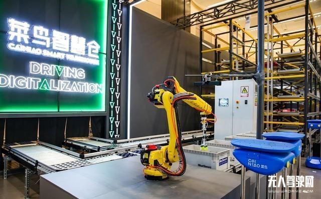 展區現場,菜鳥全鏈路無人操作的智慧倉引人注目:商品自動存儲在立體倉庫,發貨時由算法調度出倉,機械臂將商品搬運交接給機器人,機器人完成運輸,實現物流倉庫的全無人化操作。據悉,這已經在菜鳥的多個物流倉庫實現。