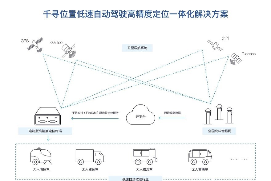根據市場研究機構佐思產研的預計, 2020年中國低速自動駕駛車銷量將達1.1萬臺,2023年將達10.4萬臺。隨著低速自動駕駛車生產規模的擴大,此前行業內普遍采用的高精度衛星定位方案,出現了成本高昂和開發鏈條長的“瓶頸”。為了解決這些問題,千尋位置低速自動駕駛高精度定位解決方案在集成便捷性和性價比等方面進行了突破。