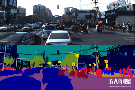 ApolloScape中的場景解析(scene parsing)數據集包括了14.7萬幀的具備逐像素語義標注的圖像,相對于包括Waymo在內的僅具備矩形框標注的數據集,像素級標注提供了更為細致的而且不受物體間的遮擋影響的場景信息,旨在推動更為精準的視頻場景語義理解技術。除了二維視頻圖像,其每幀相關的三維點云也被逐點標注了語義信息。另外,圖像的逐像素標注的時間工作量超過了矩形框標注的工作量十倍以上。