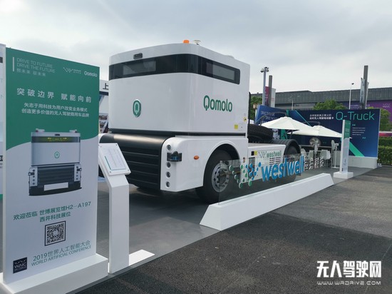 在2019世界人工智能大會,全球首款全時無人駕駛電動重卡Q-truck量產車在上海世博展覽館北廣場戶外無人駕駛展區首次亮相。