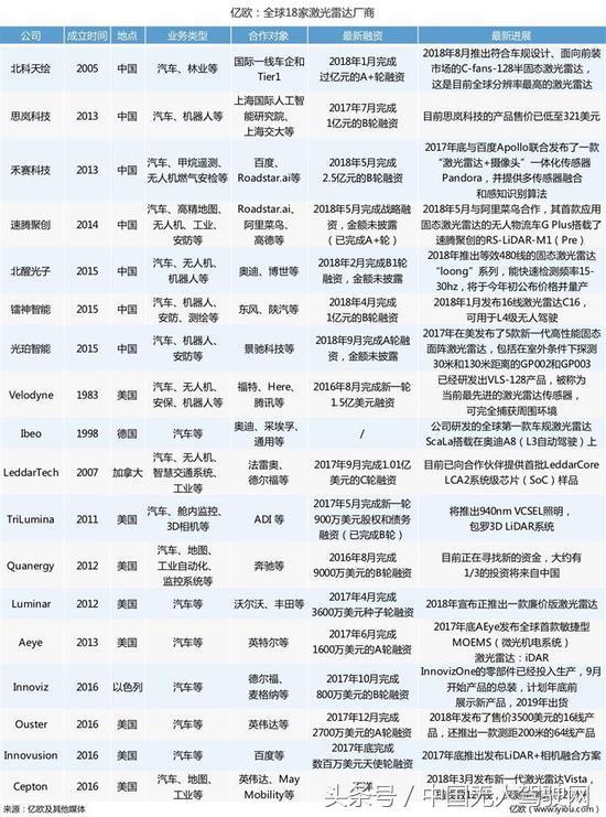 鑒于激光雷達在自動駕駛中的重要地位,選取了國內(nèi)外18家激光雷達廠商,并從各個維度進行盤點,供業(yè)內(nèi)人士參考。
