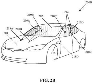 特斯拉專利顯示:當(dāng)車載的傳感器檢測到玻璃上附著有污漬時(shí),激光此時(shí)會發(fā)射高能光束,將玻璃及車頂上的污漬燒掉,從而實(shí)現(xiàn)保持玻璃清潔的作用。