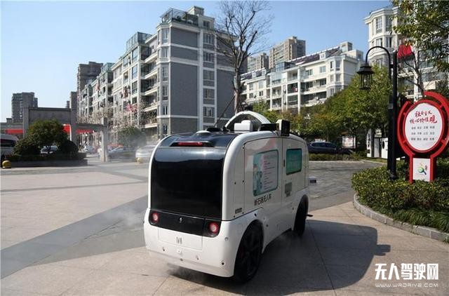 據江南社區工作人員介紹,只要在系統上導入地圖,設置好行駛速度,5G無人駕駛消毒車就能自動行駛,僅用二十分鐘,就可以完成對小區內人行道路面、護欄、花壇,以及垃圾桶、停車場邊角等地的全面自動化噴灑消毒作業,有效解決了疫情期間清潔工荒、消毒難等問題。