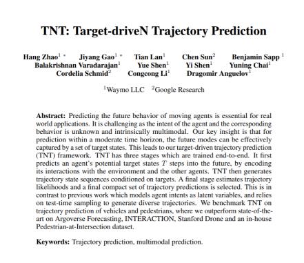 Waymo與谷歌提出顛覆性TNT模型,實現(xiàn)自動駕駛多軌跡行為預測