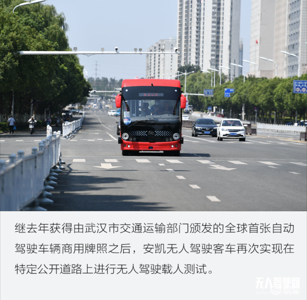 繼去年獲得由武漢市交通運輸部門頒發的全球首張自動駕駛車輛商用牌照之后,安凱無人駕駛客車再次實現在特定公開道路上進行無人駕駛載人測試。