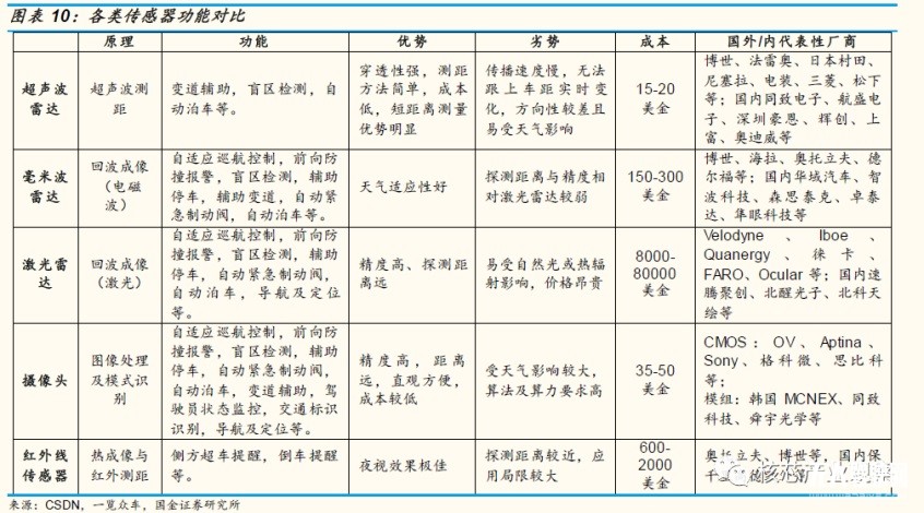 1)傳感器:目前主流的自動駕駛傳感器以攝像頭和雷達為主。