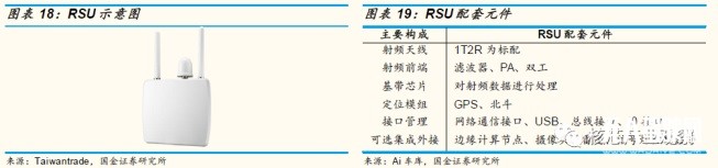 路側單元(RSU)類似于通信“小基站”,主要由射頻模組構成,也根據終端應用的場景外接各類不同設備。RSU 安裝在路側,采用 DSR 技術,與車載單元 OBU 進行通訊,實現車輛身份識別,電子扣分的裝置。主要功能包括:接收與發送數據,作為車聯網信息中轉站;感知道路狀態;執行信號燈操作;對接路側可變信息牌等。區別于車載終端,路側單元與中國的交通系統和交通環境有密切的耦合性與相關性。目前的 RSU 供應商主要來自于自主企業,包括大唐、華為、東軟、星云互聯、金溢科技、千方科技、萬集科技等。