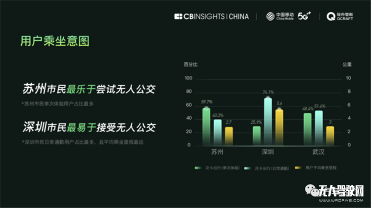 深圳市民日常通勤用戶占比最多,且平均乘坐里程最遠,最易于接受無人公交。