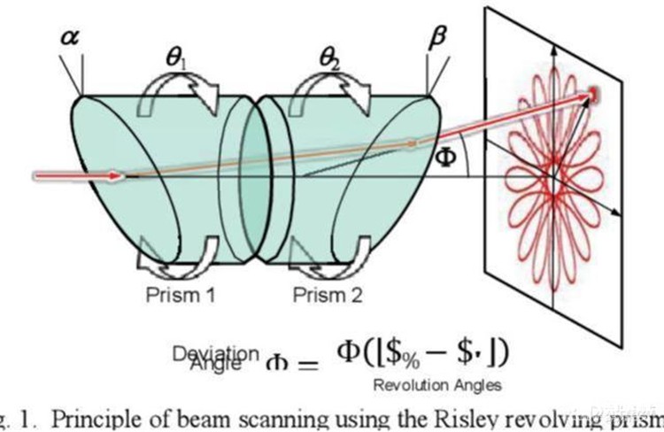 棱鏡激光雷達也稱為雙楔形棱鏡激光雷達,內部包括兩個楔形棱鏡,激光在通過第一個楔形棱鏡后發生一次偏轉,通過第二個楔形棱鏡后再一次發生偏轉。控制兩面棱鏡的相對轉速便可以控制激光束的掃描形態。