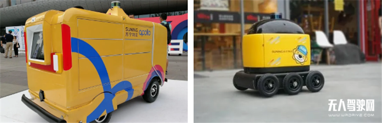 蘇寧:落實在南京的蘇寧小店社區的“臥龍一號”,是一個深度結合物聯網、云計算、AI等最新技術描繪出來的一個無人配送快遞車,續航可達8小時。在智能感應方面主要采用多線激光雷達+GPS+慣導等多傳感器融合定位方式,融合激光雷達擁有更加靈敏的避障反應能力;在人機交互方面臥龍一號有著更加高效的地形適應能力,可以智能提示路過的行人、車輛和障礙物,為規劃出最優繞行路徑提供依據。