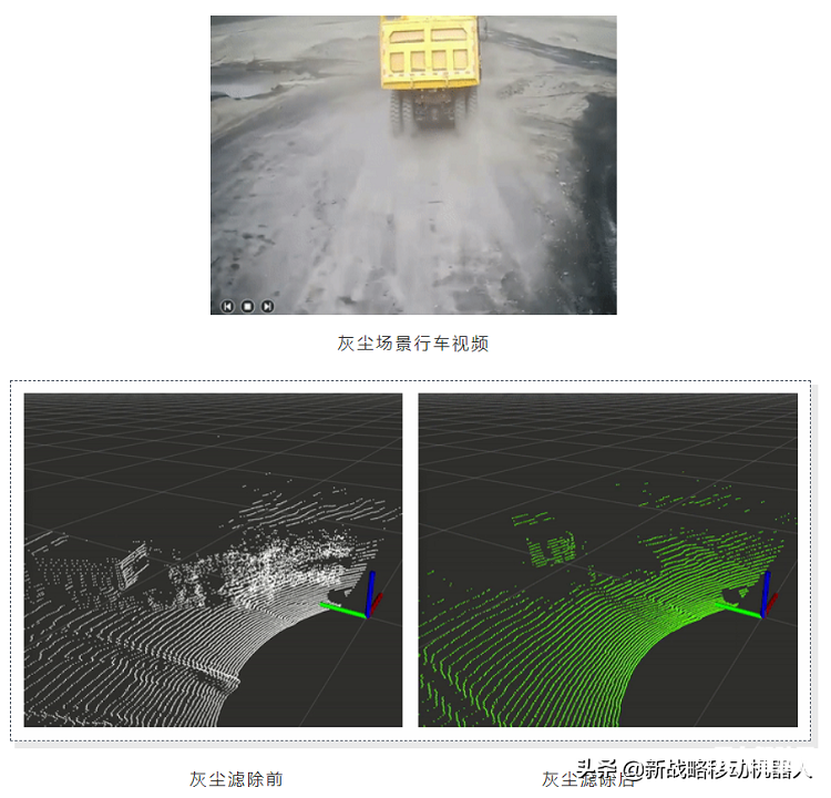 首先要面對的是礦區(qū)灰塵大的問題。踏歌智行將多年積累的大量礦區(qū)點云數(shù)據(jù)與深度學習神經(jīng)網(wǎng)絡Deep-Tage相結(jié)合,成功研發(fā)出了點云灰塵濾除算法,能夠?qū)覊m干擾進行精準濾除,從而大幅提升灰塵場景下的識別有效性。