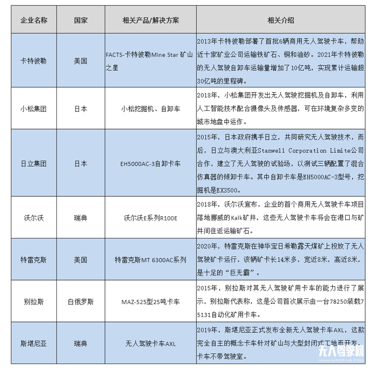 與此同時,國外礦區無人駕駛是怎樣的情況?相關企業都有又有哪些表現,低速無人駕駛全媒體特別盤點了該領域中的國外企業以及相關動態,以饗讀者。