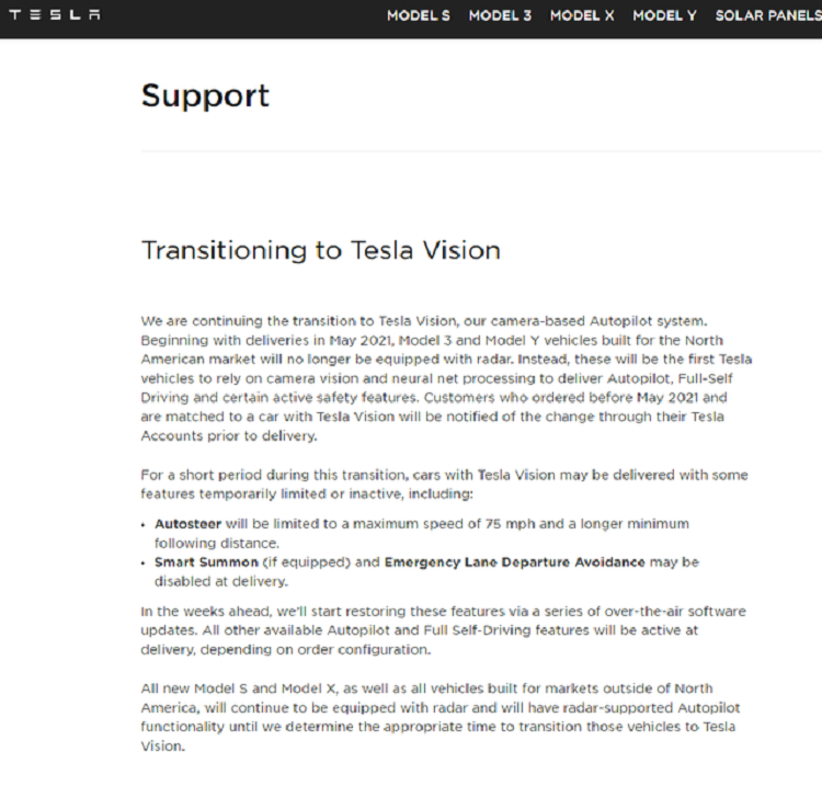 特斯拉在周二的聲明中也表示,過渡到以攝像頭為重點的系統(tǒng)可能會導(dǎo)致部分駕駛輔助功能受限,如車道居中和停車輔助。