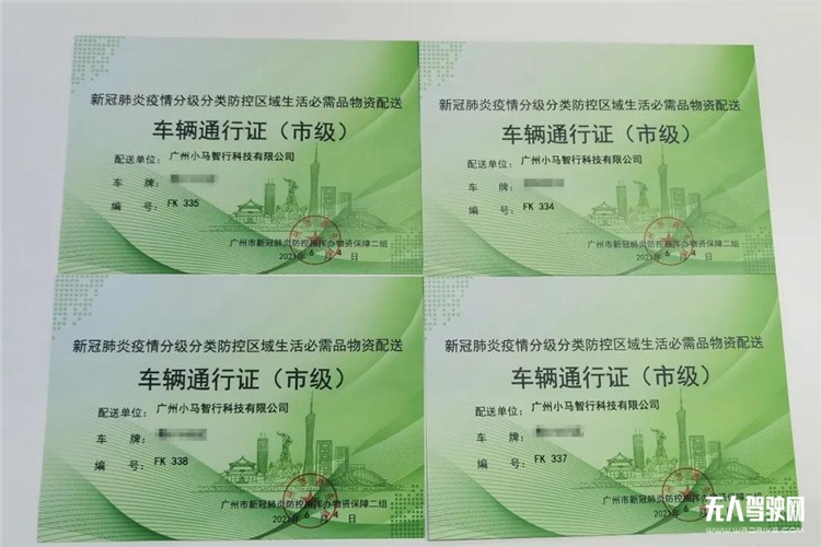小馬智行自動駕駛運輸車隊通行證(部分)