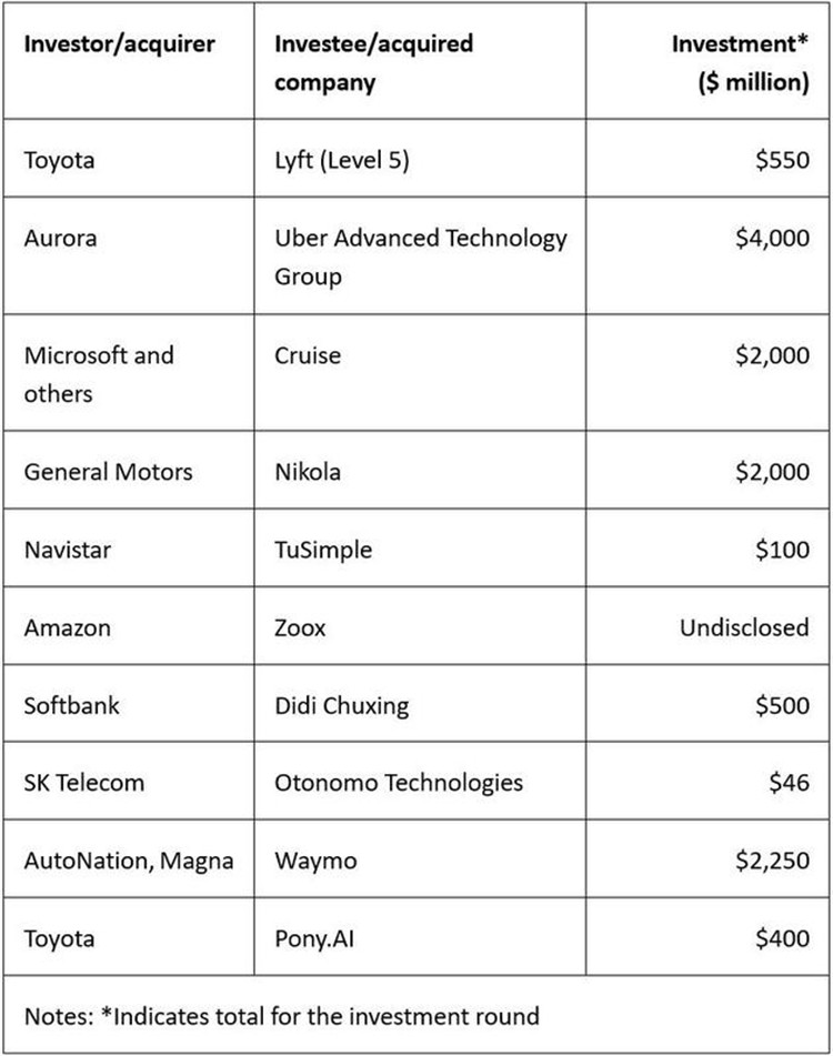 表1:2020-2021年(4月)部分自動駕駛投資。 資料來源:Omdia。