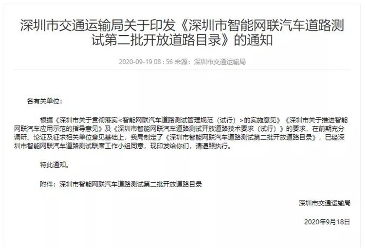 2018年5月,為進(jìn)一步加快推動(dòng)智能網(wǎng)聯(lián)汽車技術(shù)研發(fā),規(guī)范智能網(wǎng)聯(lián)汽車道路測(cè)試管理有關(guān)工作,深圳市交通運(yùn)輸委、發(fā)展改革委等部門聯(lián)合印發(fā)《深圳市關(guān)于貫徹落實(shí)智能網(wǎng)聯(lián)汽車道路測(cè)試管理規(guī)范(試行)的實(shí)施意見》。