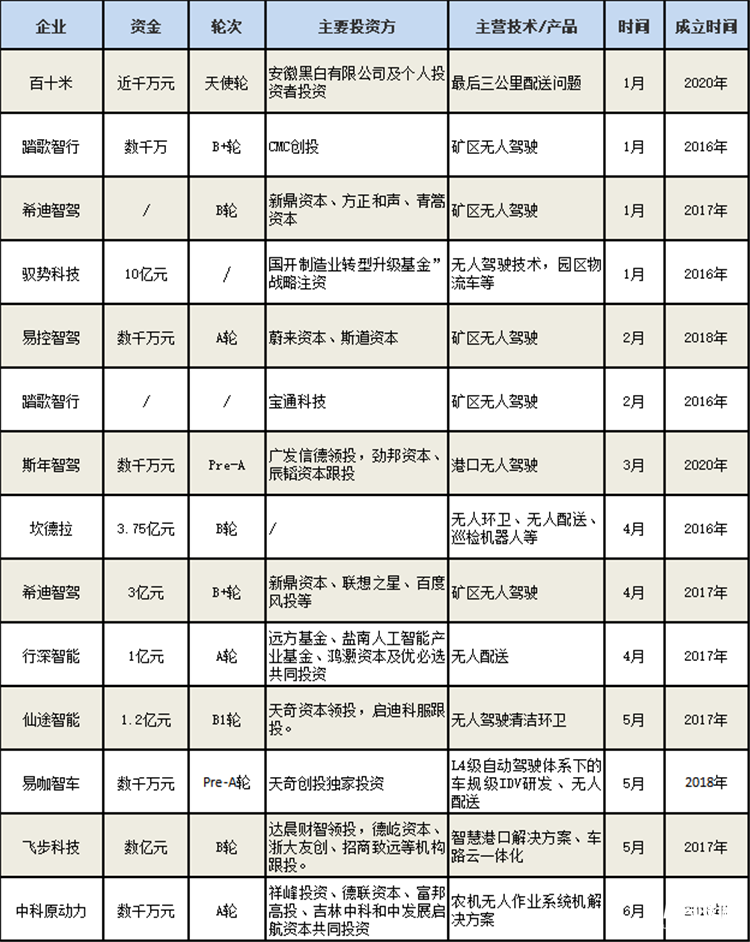 表:2021年上半年低速無(wú)人駕駛行業(yè)零部件企業(yè)融資情況(本表粗略統(tǒng)計(jì),如有未完善之處,請(qǐng)指正!)