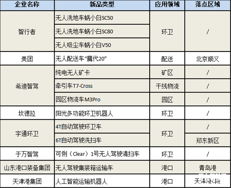 表:2021年上半年低速無(wú)人駕駛行業(yè)新品發(fā)布情況(本表粗略統(tǒng)計(jì),如有未完善之處,請(qǐng)指正!)