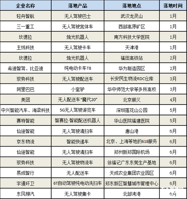 表:2021年上半年低速無(wú)人駕駛行業(yè)產(chǎn)品落地情況(本表粗略統(tǒng)計(jì),如有未完善之處,請(qǐng)指正!)