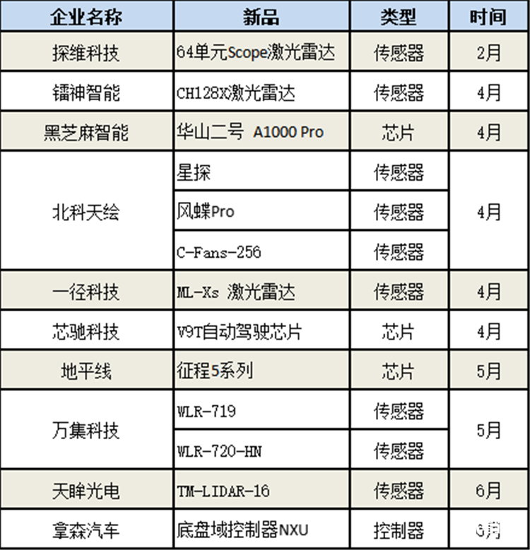 表:2021年上半年低速無(wú)人駕駛行業(yè)零部件企業(yè)新品發(fā)布情況(本表粗略統(tǒng)計(jì),如有未完善之處,請(qǐng)指正!)
