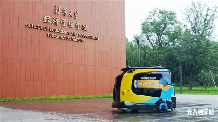 清華大學是中國“智慧校園”示范基地,蘑菇車聯是全球領先的自動駕駛全棧技術與運營服務提供商,清華大學經管新樓前的蘑菇車聯自動駕駛清掃車受到多方好評。