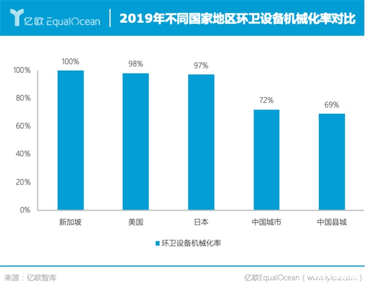 根據住建部《2019中國城鄉建設統計年鑒》,2019年全國城市道路清掃機械化率為72.4%,全國縣城道路清掃機械化率為69.2%,已經越過機械化率的基本階段(60%),但與美國等發達國家近100%的機械率相比,仍存在一定差距。