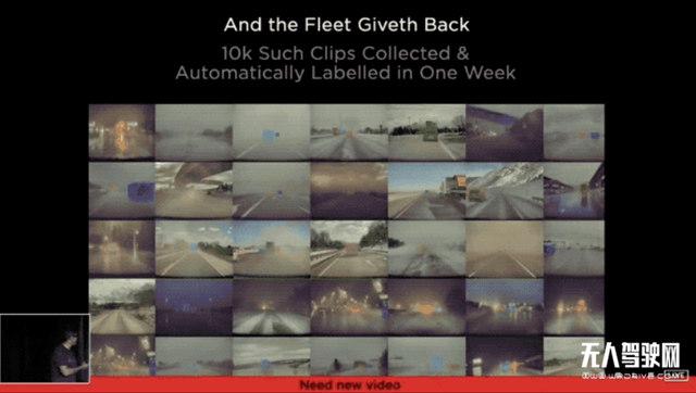 這部分少見的長尾數據通常無窮盡,但又必須在盡可能短的時間內學會應對,如果一切都讓人工操作,無疑需要耗費巨大的時間成本和資源。盡管在8月20日AI大會上,卡帕西透露目前特斯拉標注團隊規模已達千人級別,但在海量行車數據面前,千人還是顯得杯水車薪,對此特斯拉內部開發了數據離線自動標注(Data Auto Labeling)以及自動訓練框架“數據引擎(Data Engine)”。