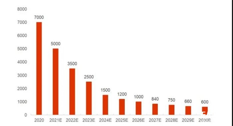 圖:激光雷達成本下降曲線預測,來源瑞銀研究、光大證券研究所整理