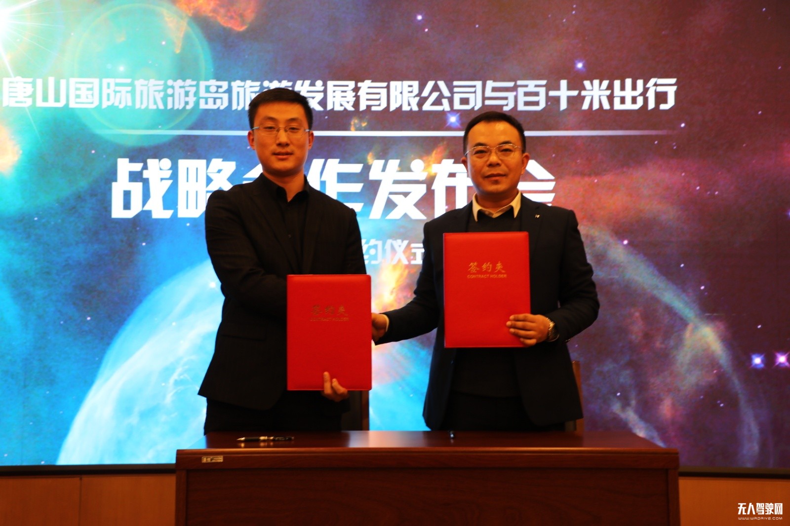 2022年1月6日下午2點,百十米出行與唐山灣國際旅游島旅游發展有限公司戰略合作簽約儀式在唐山來悅景瀾度假酒店舉行,現場聚集了唐山旅游部門的多位領導和來自唐山旅控集團的多位負責人以及眾多科技、旅游行業的媒體記者,主要出席的領有唐山國際旅游島文化廣電和旅游局局長李樹枚、旅控集團總經理肖培震,簽約雙方代表為唐山國際旅游島旅游發展有限公司總經理張楠、百十米出行總經理魏磊、百十米出行董事兼顧問總統有話說發起人汪安迪,作為百十米出行的天使輪投資方黑白集團董事長何勇、熊貓健康總經理張浩然也親臨現場并發表簽約致辭,共同見證自動駕駛行業發展的新篇章。