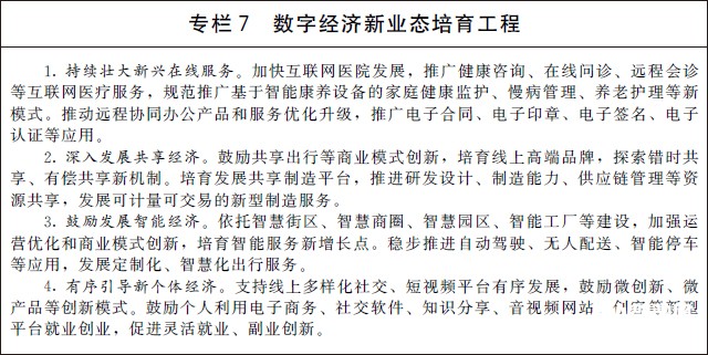 (三)加快培育新業態新模式。推動平臺經濟健康發展,引導支持平臺企業加強數據、產品、內容等資源整合共享,擴大協同辦公、互聯網醫療等在線服務覆蓋面。深化共享經濟在生活服務領域的應用,拓展創新、生產、供應鏈等資源共享新空間。發展基于數字技術的智能經濟,加快優化智能化產品和服務運營,培育智慧銷售、無人配送、智能制造、反向定制等新增長點。完善多元價值傳遞和貢獻分配體系,有序引導多樣化社交、短視頻、知識分享等新型就業創業平臺發展。