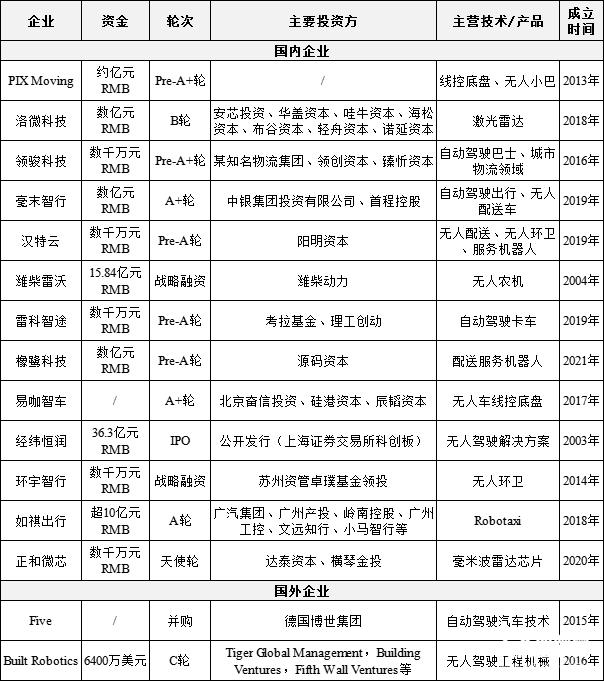 從融資領域來看,國內整車制造商、解決方案供應商及零部件企業均有融資,涉及無人小巴、無人環衛車、無人配送車、無人農機、自動駕駛卡車等多個賽道,產業整體發展穩定。