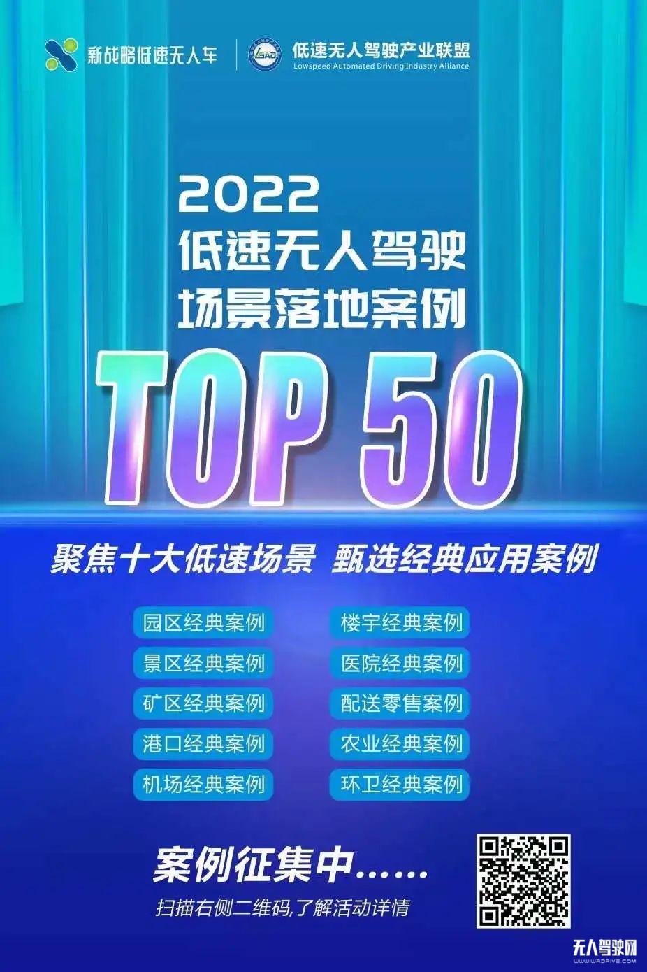 作為低速無人駕駛十大應用場景之一,港口目前已落地多個項目,促進了行業不斷向前發展。為樹立應用標桿,打造經典案例樣板形象,提振行業信心,錘煉行業影響力品牌,由低速無人駕駛產業聯盟主辦的“2022低速無人駕駛場景落地案例TOP50”甄選活動正在征集報名中,入選案例將匯編成冊,面向全行業尤其是終端用戶、投資機構、政府機構等發行。期待相關企業廣泛參與!