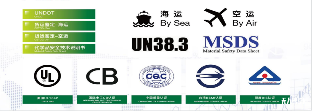電池因其本身材質(zhì)構(gòu)造原因,在使用當(dāng)中對(duì)穩(wěn)定性、安全性有著極高要求。基于此,領(lǐng)域科技深入技術(shù)研發(fā),把控每一個(gè)產(chǎn)品細(xì)節(jié),使其達(dá)到國際水準(zhǔn),公司已通過ISO9001、ISO14001、ISO45001、ITAF16949體系認(rèn)證,產(chǎn)品均符合國際運(yùn)輸U(kuò)N38.3認(rèn)證、歐盟CE認(rèn)證、北美UL認(rèn)證及德國萊茵TUV認(rèn)證要求,具備國際競(jìng)爭(zhēng)力。