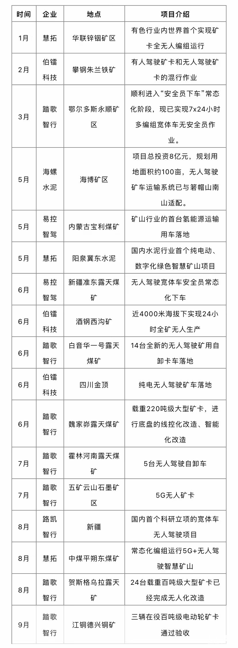 2022年國內部分新增落地礦區無人駕駛項目