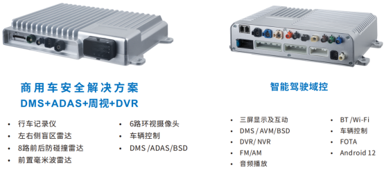 公司定位于人工智能為核心的商用車安全及信息化解決方案提供商,在貨運、工程機械、公交、出租、渣土、環衛、校車、兩客一危等商用車領域均有細分領域的全套解決方案,為行業提供安全管理和行業的效率提升。設計的多款智能駕駛域控已與多家知名的車企合作。