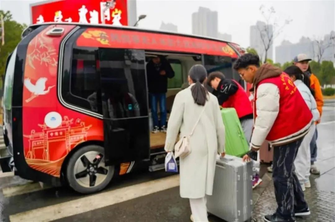 近期,武漢城市職業(yè)學院開學,兩輛無人駕駛智能小車忙碌于校門和宿舍之間,為返校學生提供一站式行李運送服務。無人駕駛擺渡車內(nèi)沒有駕駛位、方向盤、離合器和剎車,僅有一個操作面板,兩排座位對向排列,可供6名同學落座,而座位之間有著超大容量。