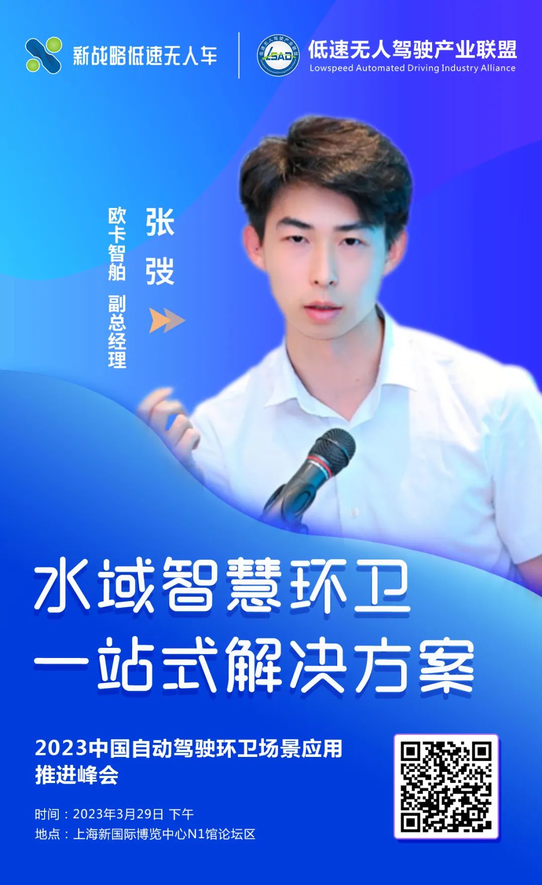 3月29日,在“2023中國自動駕駛環衛場景應用推進峰會”上,歐卡智舶副總經理張弢將帶來《水域智慧環衛一站式解決方案》主題演講,敬請期待!