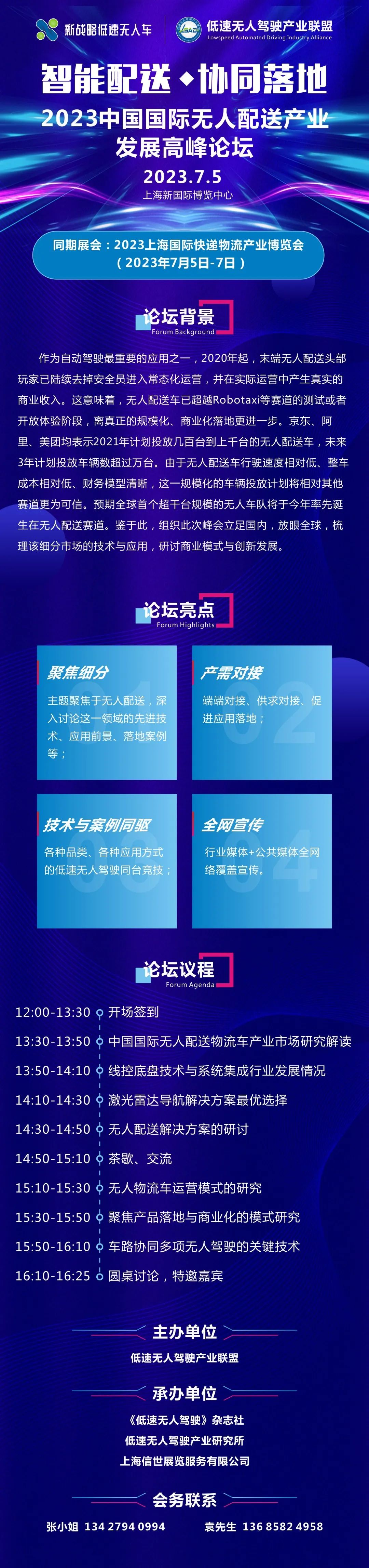 【7月5日·上海】2023中國國際無人配送產業發展高峰論壇