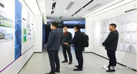 李進科一行實地觀摩智能網聯汽車產業園科技展廳,對園區整體發展規劃和入駐企業情況進行初步了解。隨后參觀了協創院展廳,重點關注了核心技術研發和相關落地產品。