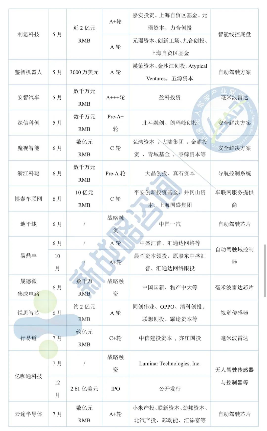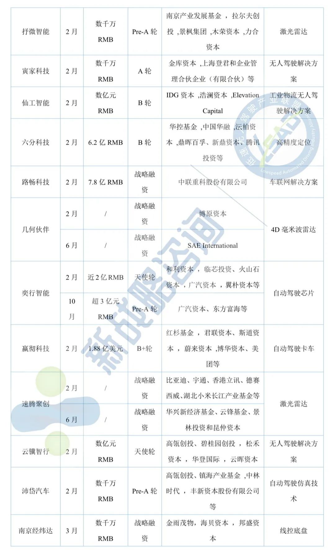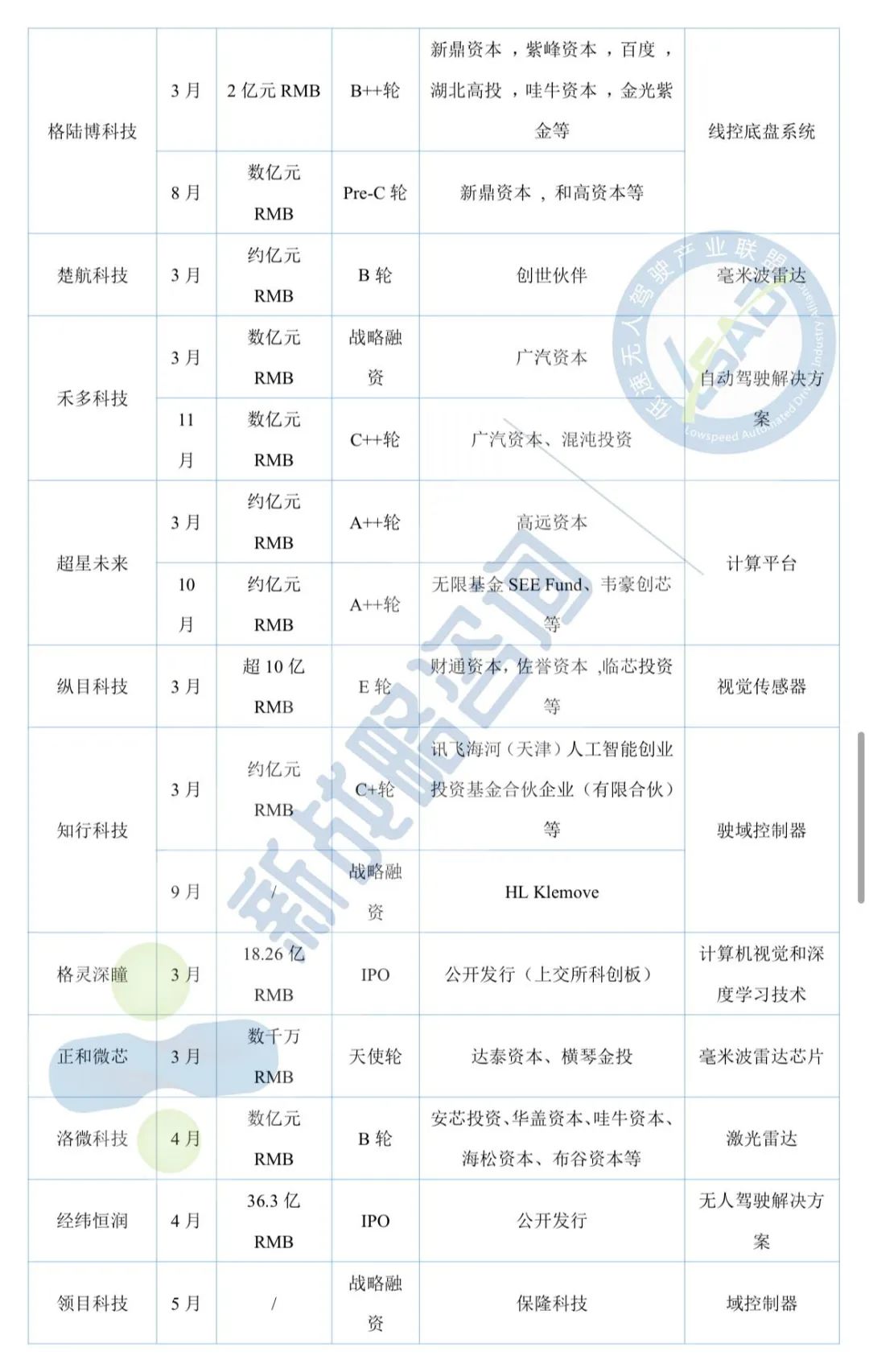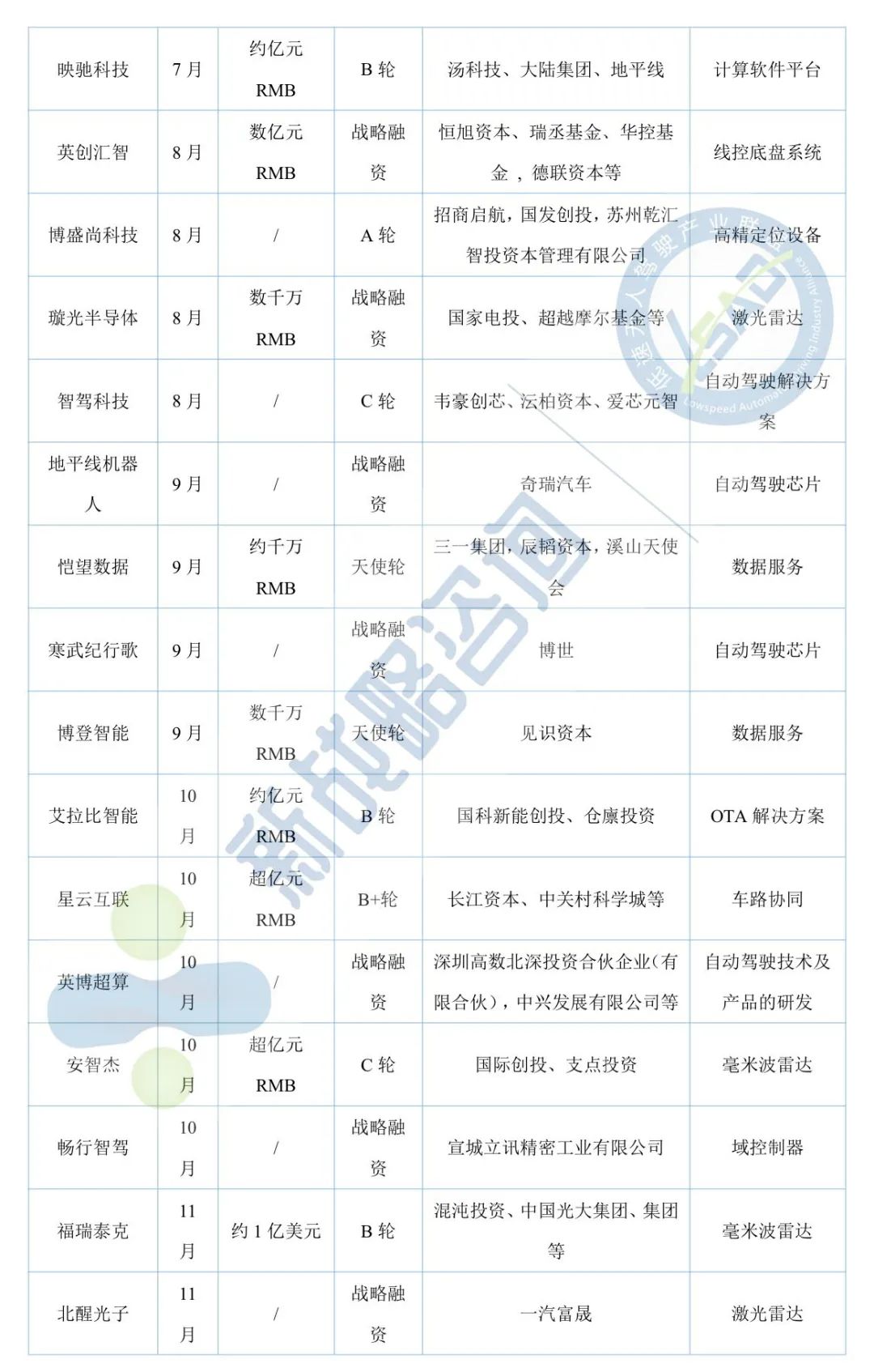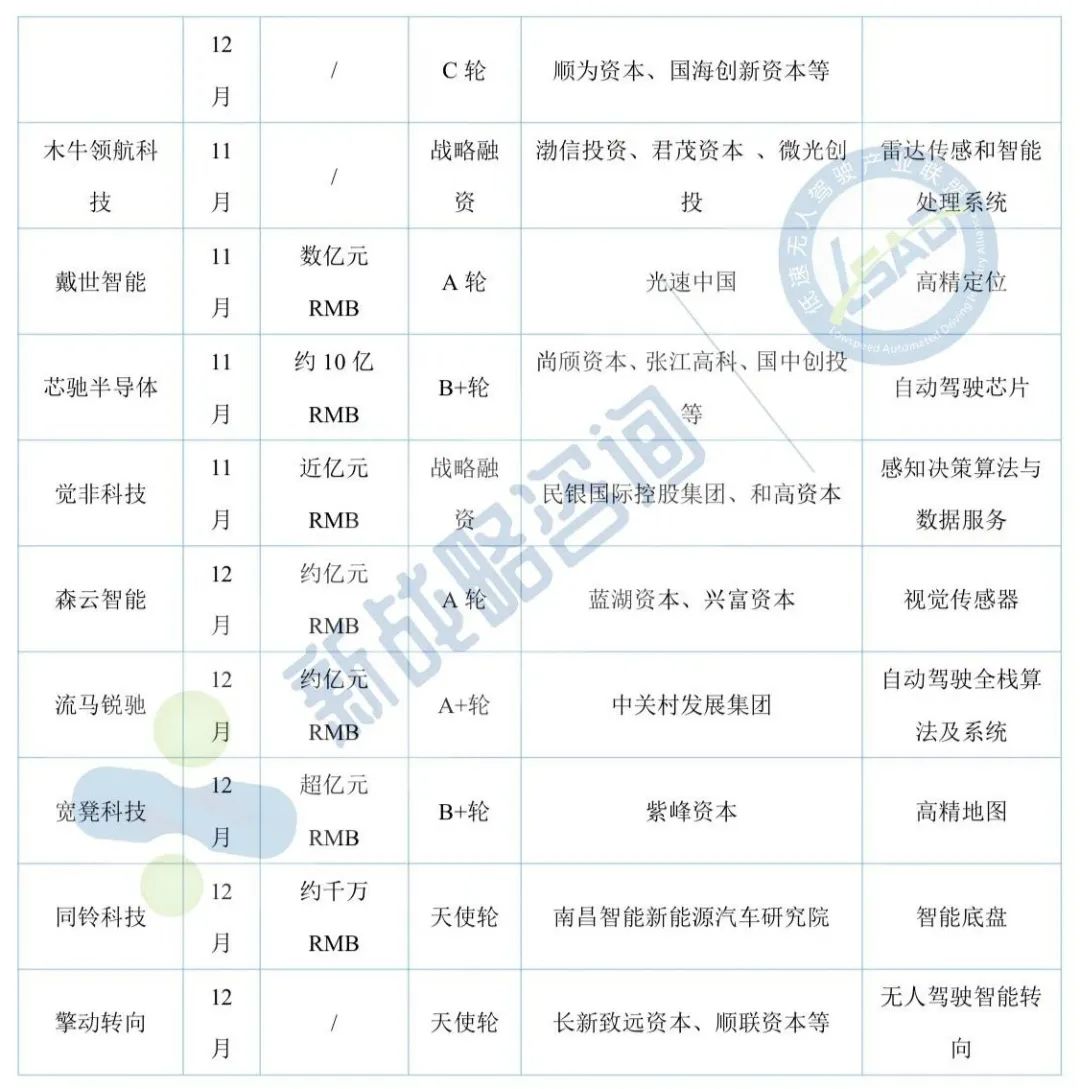11月自動駕駛領域融資13起、超52億元