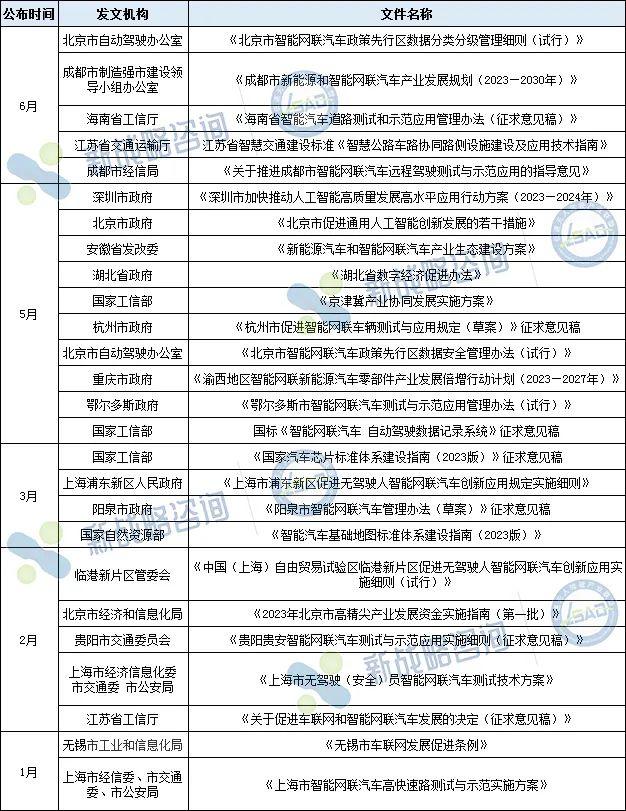 2023上半年自動駕駛領域新出臺政策一覽(新戰略低速無人駕駛產業研究所不完全統計)