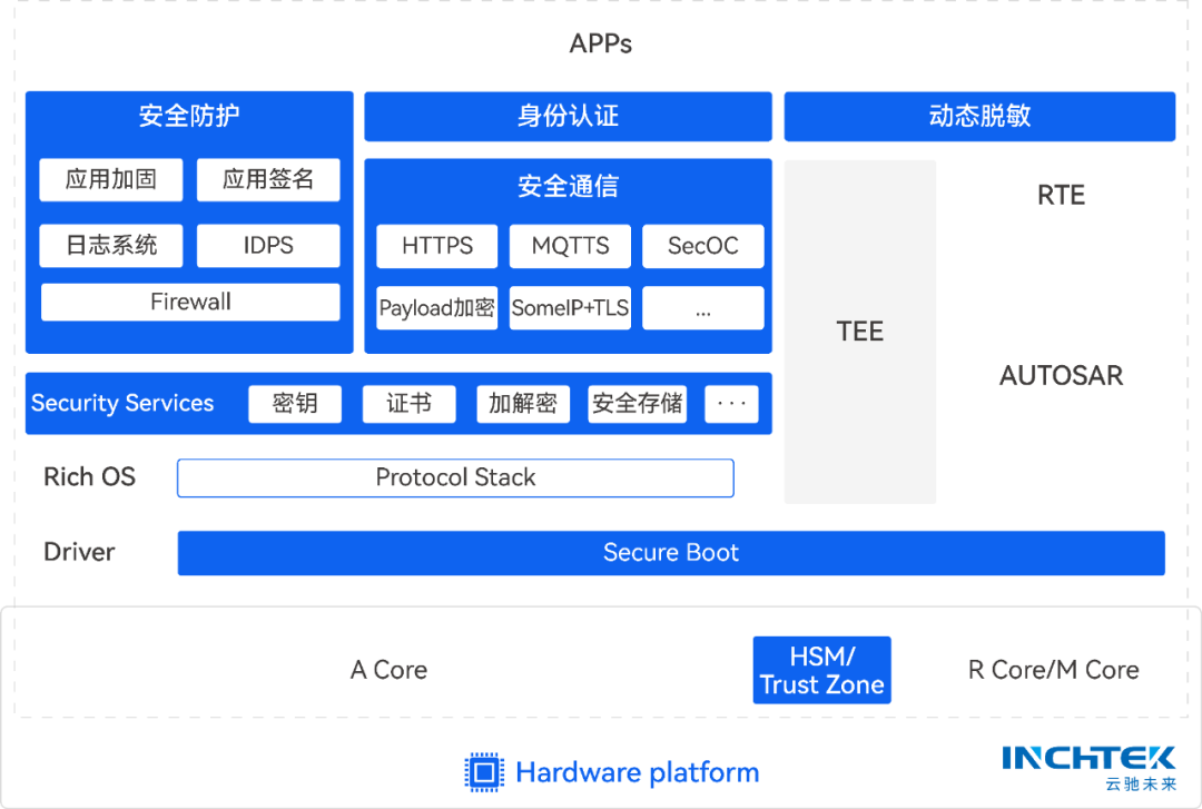 云馳未來ECU/DCU信息安全framework,可以提供信息安全技術(shù)框架(Cyber Security framework),包括整車級信息安全技術(shù)方案、零部件級信息安全技術(shù)方案、關(guān)鍵技術(shù)實施規(guī)范、軟件SDK及工具。為OEM及Tier1提供統(tǒng)一網(wǎng)絡(luò)安全服務(wù),提升網(wǎng)絡(luò)安全防護能力的同時,保障安全合規(guī)要求、保障產(chǎn)品可靠性、減少重復(fù)投入,為車型開發(fā)提供標準、可靠的網(wǎng)絡(luò)安全技術(shù)支撐。