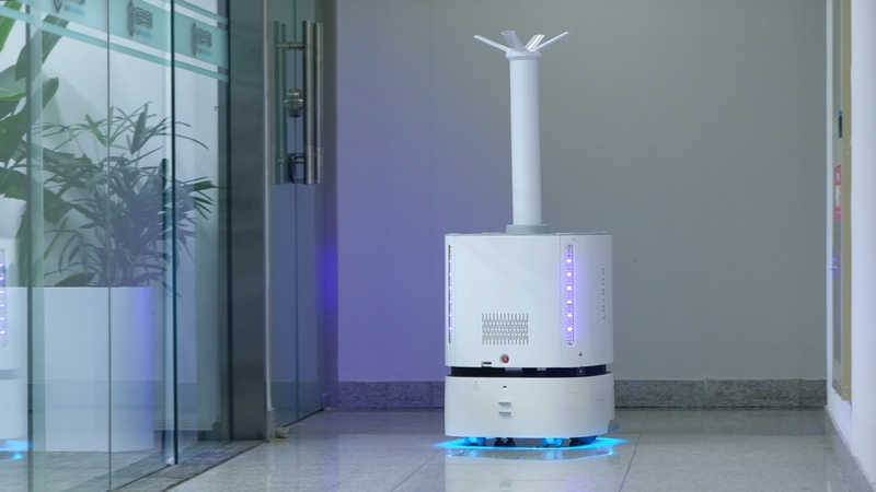 現代機器人從1984年開始機器人事業,并不斷加大技術投入,目前大力拓展了工業機器人、潔凈機器人、服務機器人及系統事業。此次亮相展出了防疫消毒機器人,可廣泛應用于醫院、學校、商場、辦公樓等人員密集的公共場所。