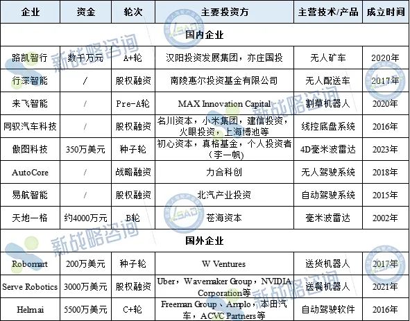 從融資領域來看,整車企業以物流配送機器人研發商最多,包括行深智能、Robomart、Serve Robotics,公司產品廣泛運用的送餐、零售、快遞配送等領域。