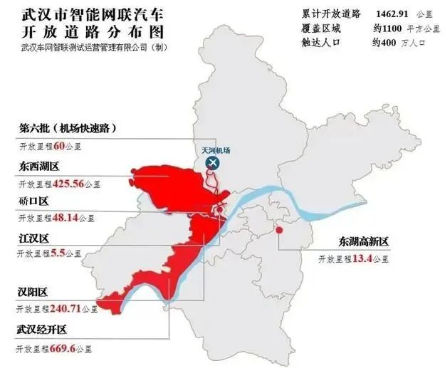 今年8月,第七批智能網聯汽車測試道路正式對外公布,新開放東西湖、漢陽和硚口三區約651.35公里道路,漢陽與漢口實現了跨區連片。