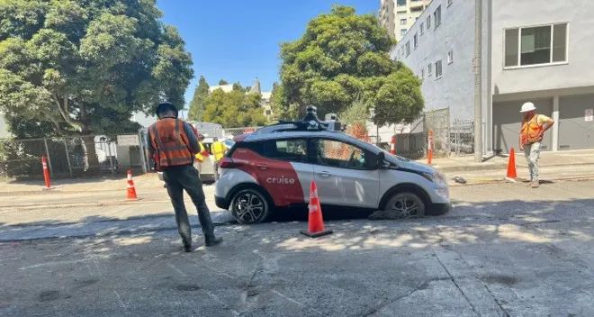 8月15日,一輛Cruise無人出租車誤駛?cè)胧┕や伮饭さ兀瑒倓倽仓臐窕炷林校瑹o法移動。隨后Cruise表示,已經(jīng)召回了這輛車。