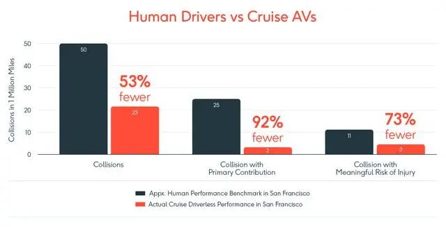 但事實看來,當?shù)鼐用癫⒉毁I賬。據(jù)了解,當初為了說服加州政府允許無人駕駛出租車上路,Cruise拿出了大量數(shù)據(jù),證明無人駕駛比有人駕駛更安全。