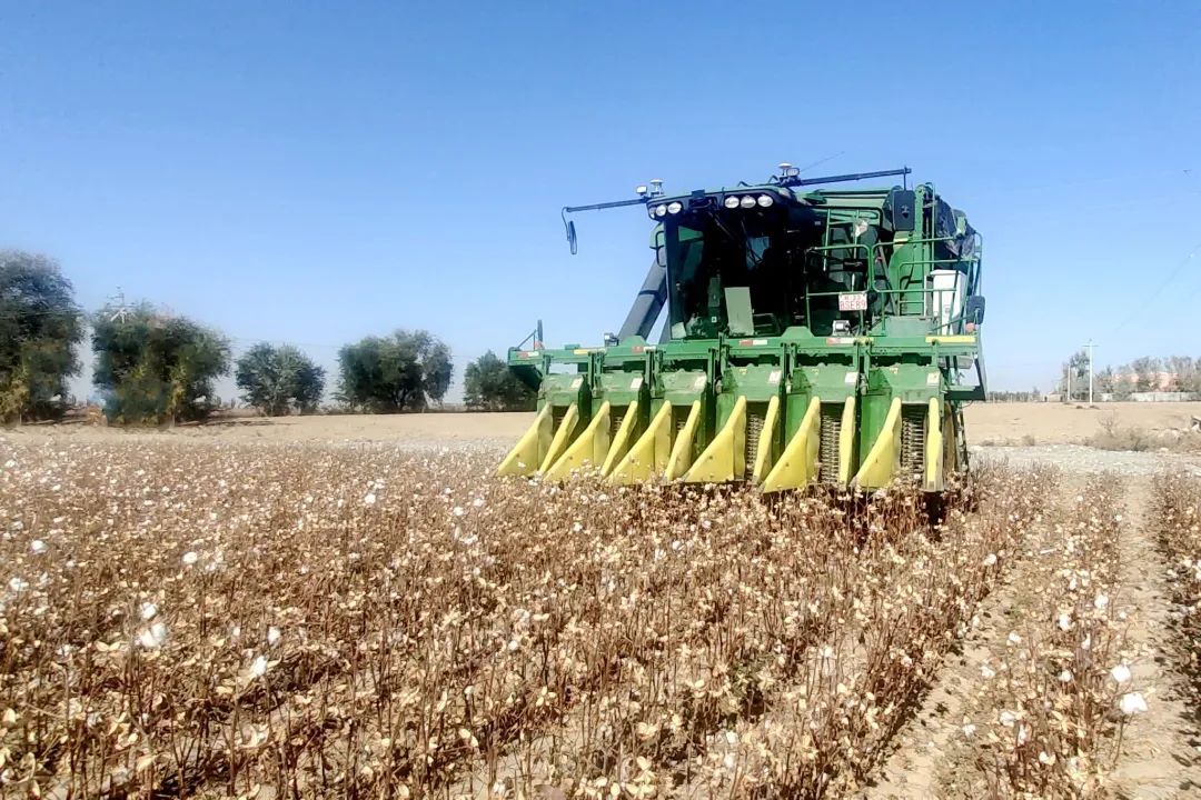 新疆地廣人稀,棉花種植規模大,采收工作量繁重,而采棉機技術操作要求高,工作強度大。當前是棉花的采收期,在新疆生產建設兵團第八師的農場棉田里,投用了“無人駕駛采棉機”助力采收。